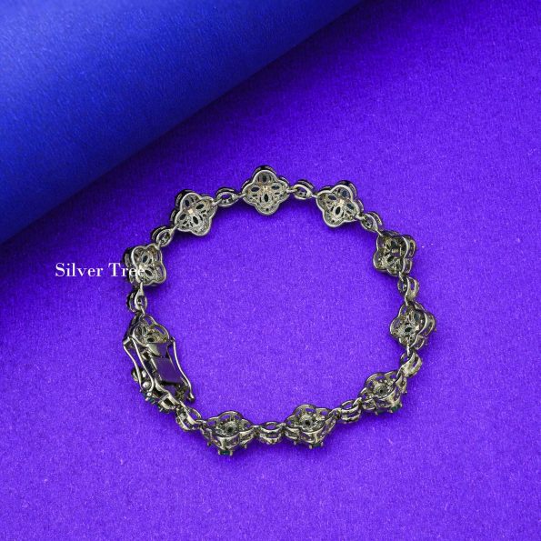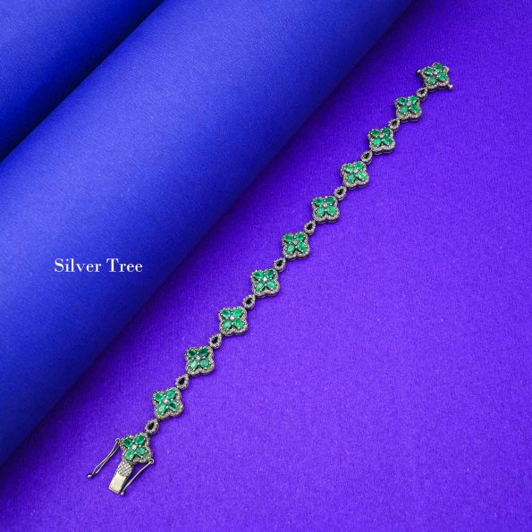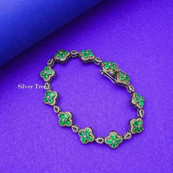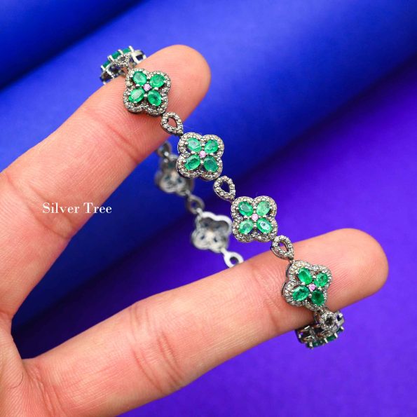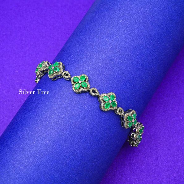 925 Sterling Silver Diamond With Natural Green Emerald & pink sapphire Bracelet For Women And Handmade Bracelet Gift For Her.