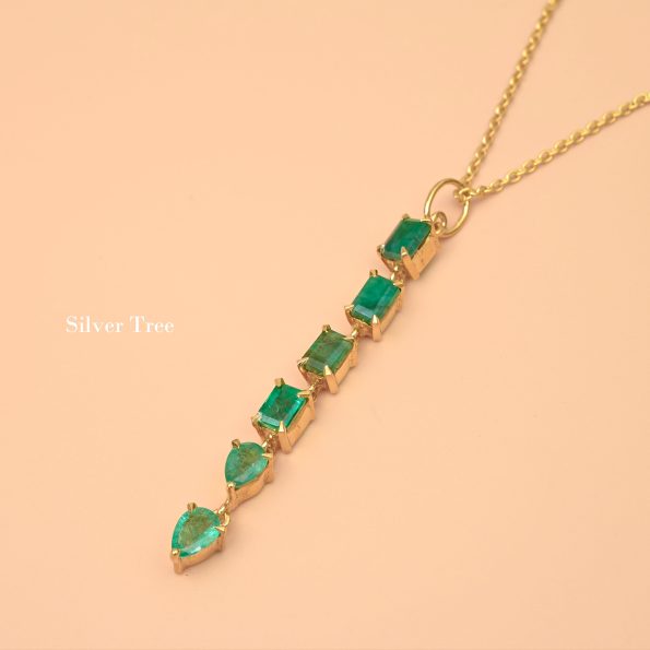 Natural Emerald Gemstone Pendant 925 Sterling Silver 18k Gold Plated With Chain length 16+2” Dangle Pendant Multi Shape pendant For Her